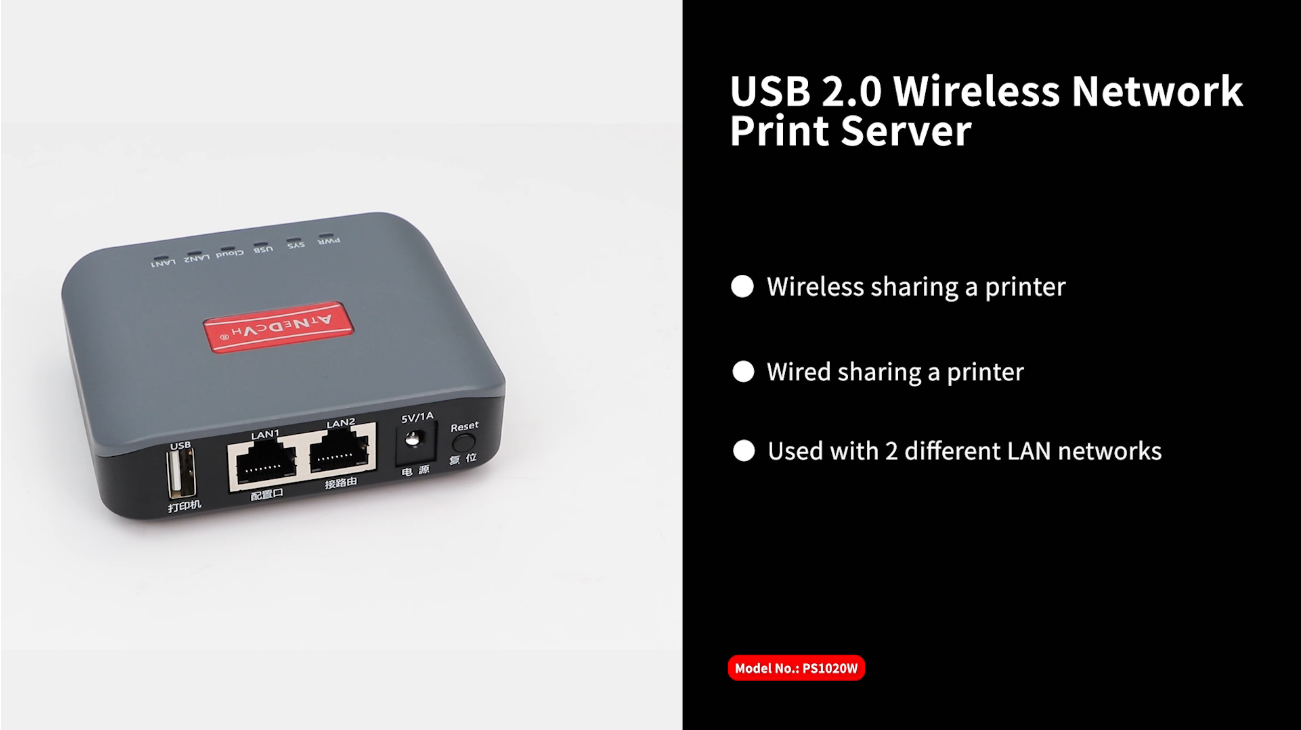 PS1020W - Wireless & Wired LAN USB Print Server